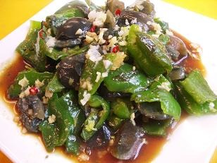・ピーマンとピータンの和え物・・中華の前菜、ビールのおつまみに最適です。ピータンの使い方が