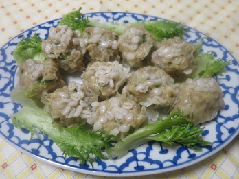 ・大麦入り焼売・・ 雑穀の代表大麦を入れた焼売。軽くいただけていくつも食べられます。