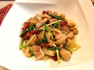 2品目は鶏肉のカシューナッツ炒めタイ風です。ポピュラーな鶏肉のカシューナッツ炒めは中華ではお馴染みのお料理ですから食べた事がある方も多いでしょう。ナッツと鶏肉、ピーマンの3つの素材の持ち味が見事にマッチした炒め物です。