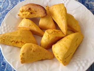 スイーツは南瓜のスコーンです。ほくほくした自然の甘味いっぱいの素朴な秋ならでは味です。ホットミルクとも相性抜群です。