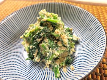3品目は菜の花の白和えです。白和えのほのかな甘味と菜の花のかすかな苦味が何とも春らしいおすすめの一品です。伝統的な日本の味ですが白和えを作った事のない方も多いはず。ぜひ挑戦してみて下さい。