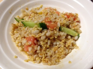 ・雑穀・麦とアマランサスのサラダ・・・麦は食物繊維が米の20倍、その他血液サラサラなど効果は沢山あります。アマランサスはカルシウムが米の20倍、雑穀の中の最強コンビのサラダと言えましょう。沢山食べて身体を綺麗にしましょう。