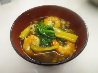 ・小海老と麦飯のカレーあんかけ・・ 麦飯にだしのきいたカレーあんが美味しく、いくらでも食べられます。