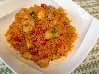 2品目はモロッコ料理クスクスのオリジナルバージョンです。パプリカを入れて私風にスパイシーに仕上げています。ワインにもあいますからちょっとした席におつまみやオードブルとして出すのも悪くないと思います。