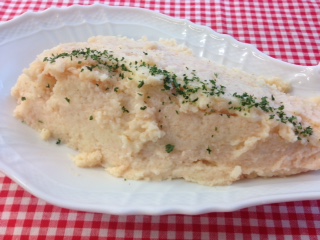 お料理は豆乳を使ったギリシャのタラモサラダです。あっさりとしてとヘルシーです。カナッペやオードブルに添えるとおしゃれです。