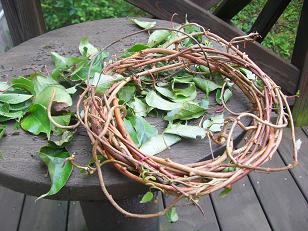 満腹になったところで午後は山で採ってきたツルを使って教室で使うリース作りです。