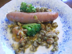他にも持っていった緑豆をレンズ豆風にソーセージと煮込んだり、