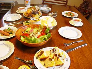 料理の先生でもあり、お招きしてもらっている身分でもあるのでいつも食事係をさせてもらっています。緑を楽しむためにテラスでの朝食となりました。
