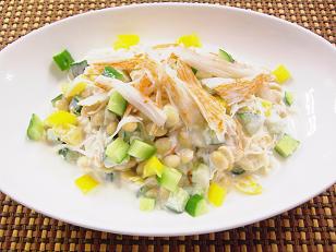 写真は大豆のサラダヨーグルトソース無国籍料理です。