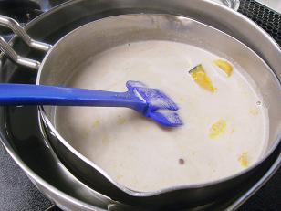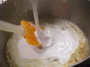 炒めたカレーペーストにココナッツミルクを入れて。。。