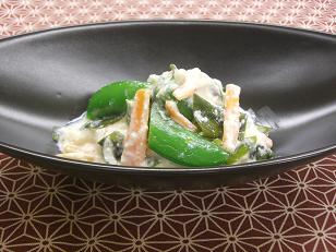 白和えにヨーグルトと聞くとぎょっとする方もいるかも知れませんが、さにあらず味はなかなかのものです。確かにヨーグルトは入っているのに味にまったくヨーグルトの酸味や香り・クセがなく、そのかわりに普通の白和えよりさっぱり仕上がっています。
