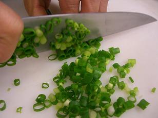 5月のホームクッキングBコースでは胡麻汁を紹介します。まずねぎを刻み。。。