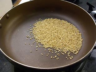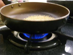 (1)大麦はとぐ。鍋にといだ大麦・水をたっぷり