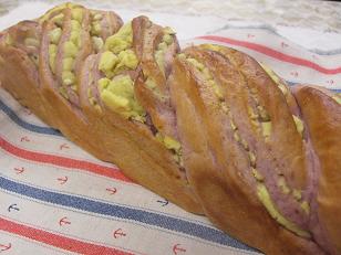少し前になりますが新しいパンを焼きました。紫芋パンとスイートポテトのツイストです。
