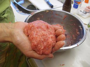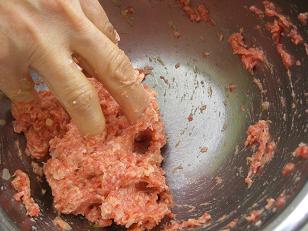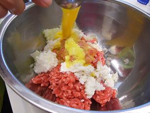 まず挽き肉や卵などの具材を合わせていきます。