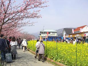 下に目線を降ろすと菜の花の黄色がまぶしかったです。ウィークデイだと道も歩けるそうですが週末だと身動きも取れない混雑になるそうです。