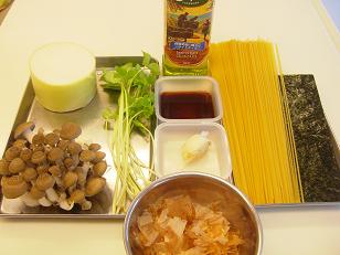 2月のホームクッキングAコースではしめじのパスタおろしソースを紹介します。上の写真は材料です。