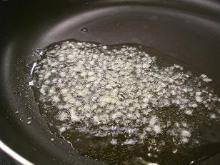 フライパンでにんにくのみじん切りを炒め。。。