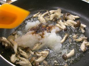 しめじと大根おろしを加えます。