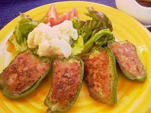 ピーマンのひき肉詰めも紹介します。誰にもが好かれるまさに家庭料理と言える一品です。