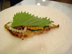 甘いソースにつけていただきます。ライスペーパーは湿らせてもどしてした後は1回くっつくと二度と離れない性質なので注意して巻かなければいけません。わいわい言いながら巻いてゲーム感覚で楽しめる一皿です。豚肉にも下味が染み込んでいて細かく砕いたピーナッツがのせてあり中々の味でした。ただやはりこれもスイートバジルだったり香菜やミントなどを入れて巻けばもっと本場の味に近づいて美味しくなるのに。。。と心残りでした。海外でベトナム料理をいただくとたっぷりハーブがサーブされてくるのですが、やはり日本はまだまだハーブ後進国なのかもしれませんね。その点、ハーブたっぷりのミレイはやはりあなどれないと改めて感じました。