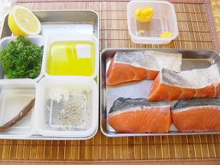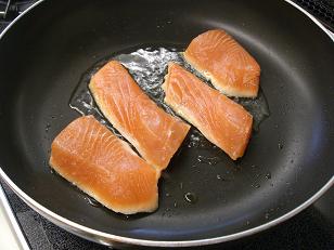 まずはサーモンを焼いて。。。