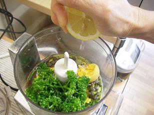 ソースの材料をミックスしていきますが、パセリがたっぷり入ります。分かりますか?