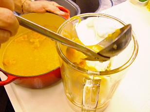 十分に煮込んだらミキサーにかけていきます。