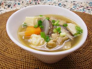 3皿目は「けんちん汁」です。もともとは精進料理なので根菜や椎茸(しいたけ)、豆腐も入り栄養価も高く、お野菜やたんぱく質をバランス良くいただける汁物です。