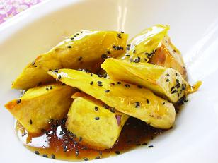 そして4皿目は「大学芋」です。家庭で大学芋が出来るの?と思われる方もいるかも知れませんがご心配には及びません。コツさえつかめばご家庭でも簡単に作れるんですよ。これを機会にぜひ生徒の皆さんには覚えていただきたいレシピです。