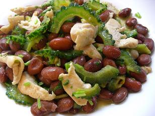 お豆好きな私はレッスンでも様々なお豆レシピを紹介していますが、プライベートでもよくお豆を使った料理をいただいています。上の写真は「金時豆とゴーヤの香菜とナンプラー和えサラダ」です。