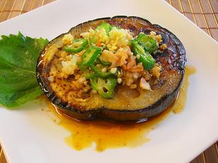 シンプルですが油で焼くと美味しさがストレートに出ます。この上に中華風のピリ辛ソースをかけていただきます。ごま油の風味がなすのとろみと絡まって食欲をそそる夏のおすすめメニューです。