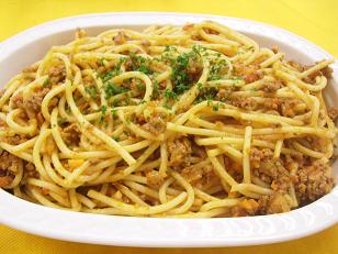 「ブカティーニ ボロネーズ」。スパゲッティではなくブカティーニ(太めのタイプ)のボロネーズです。
