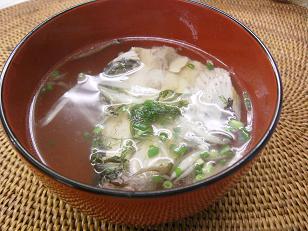 「いなだのあら煮椀。」お寿司やカルパッチョで使ったいなだのあらを使って作りました。