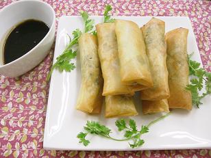 「ゴーヤの春巻き 黒酢あん添え」これもゴーヤのこんな食べ方があるなんて。。。と、大好評でした。黒酢あんとの相性もバッチリです。