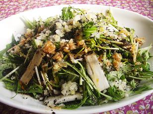 ・水菜とうどの黒酢&黒胡麻ソース