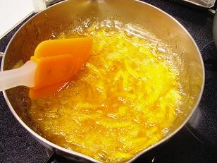瓶から取り出したマーマレードと刻んだ夏みかんの皮を合わせて煮込んでいきます。