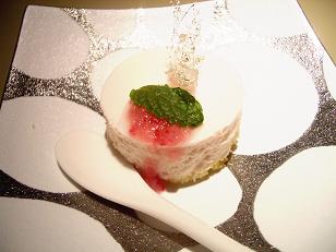 デザートの「イチゴのムース」はお皿がとっても素敵でした。