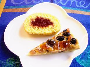 デザートは先日試作品として作ってみた黒豆のチーズタルトと朝焼いたロールケーキです。