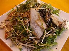 さて今日はレッスンで皆さんに教える予定の大根と水菜の黒胡麻&黒酢ドレッシング(上)を作りました。大根と水菜のシャキシャキ感と、黒胡麻が黒酢に与える奥行きある旨みがからみあってとっても新鮮な一皿です。