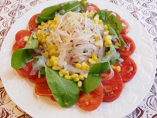 3品目はトマトとルコラの梅ドレッシングです。イタリアン以外のルコラの使い方を紹介します。