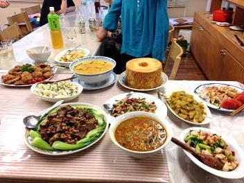 お料理は夏を意識してカレーをはじめどれも大皿で取り分けられるもの、洋風のものから角煮まで好き嫌いも考えて和洋中とまんべんなく用意しビッフェ形式にしてみました。