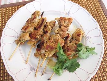 3品目はパプリカ・クミン・コリアンダーなどのスパイシーな漬け込みソースに漬けたお肉をオリーブオイルでグリルしていただくモロッコ風串焼きです。バーベキューにもよいかもしれませんね。
