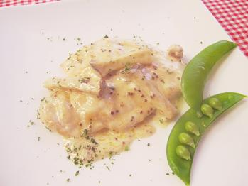 4月のヨーロピアンは蒸し煮した鶏肉をマスタードと生クリームのソースでいただく鶏肉のクリームマスタードソースを紹介します。