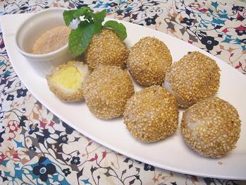 スイーツはさつま芋の揚げ団子です。さつま芋あんの自然な甘味たっぷりの胡麻揚げ団子は香ばしく秋ならではの味です。簡単に作れるおすすめ本格派点心スイーツです。10月のチャイニーズのポイントは、