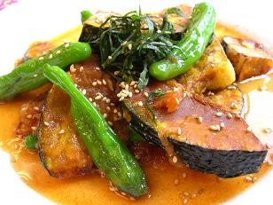 3品目は季節の野菜かぼちゃを存分に楽しんでいただくためのレシピ、南瓜のピリ辛おろしソースです。