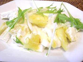 さつま芋と大根、水菜をヨーグルトのソースでクリーミーにいただくカラダにやさしい繊維質たっぷりのサラダです。