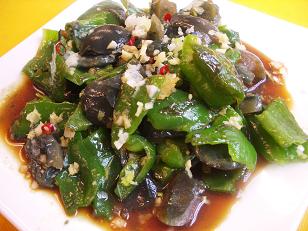 2月のチャイニーズは青椒拌皮蛋ピーマンとピータンの和え物を紹介します。ピータンを調理されるのが初めてという方もいると思います。ピータンはこのようにパックで売られていて、