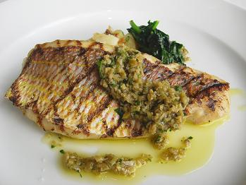 メインの鯛のポワレです。上にのっているのはオリーブを刻んだものを数種類のハーブとミックスしたものです。確かに美味しいのですが、正直ずばぬけて美味しいといったものではありませんでした。