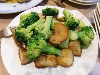 アンチョビーとじゃがいもとブッロコリーの炒め物です。これは教室でも教えたものです。素材の味が生かされている火の通し方が素晴らしかったです。